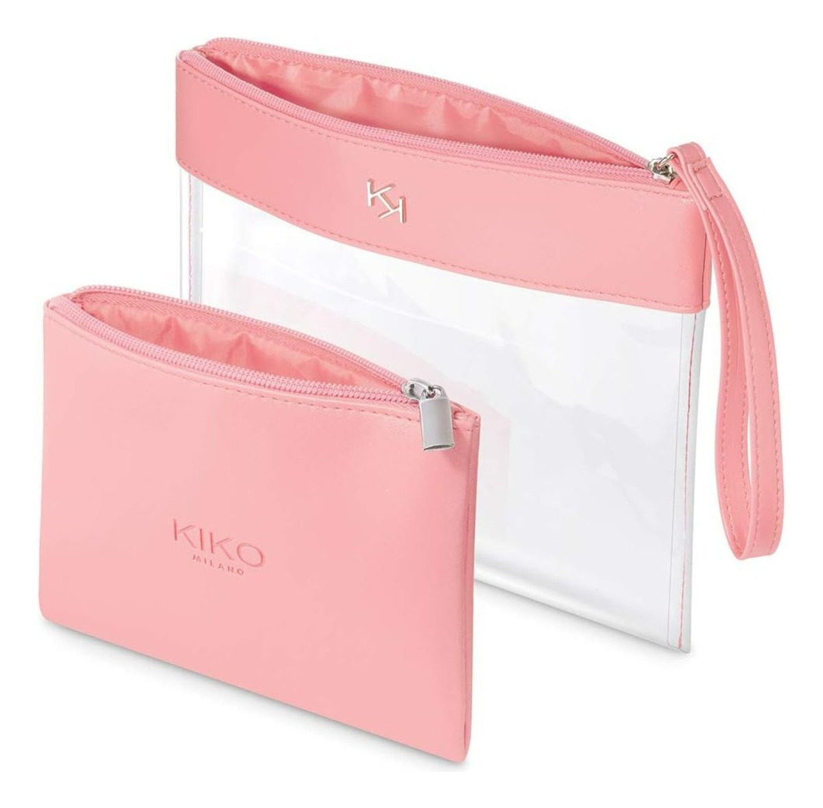 Organizá tu maquillaje y accesorios con estilo con este práctico y moderno beauty case de KIKO Milano. Su diseño doble incluye un neceser exterior transparente con cierre y asa, y una bolsa interior rosa con cremallera, perfecta para guardar tus productos más delicados.