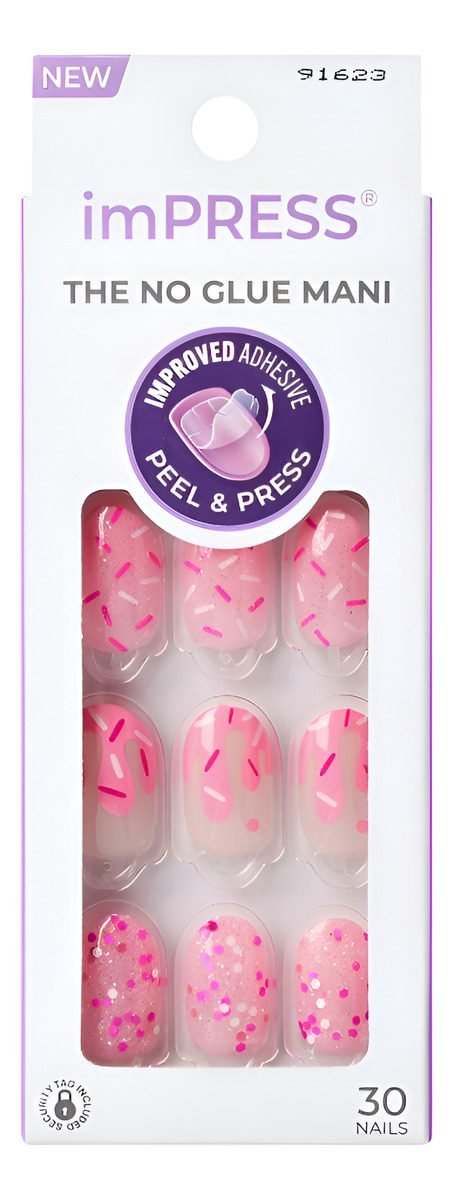 Kiss Impress Uñas Postizas Press On Pink Cream Glitter Rosa