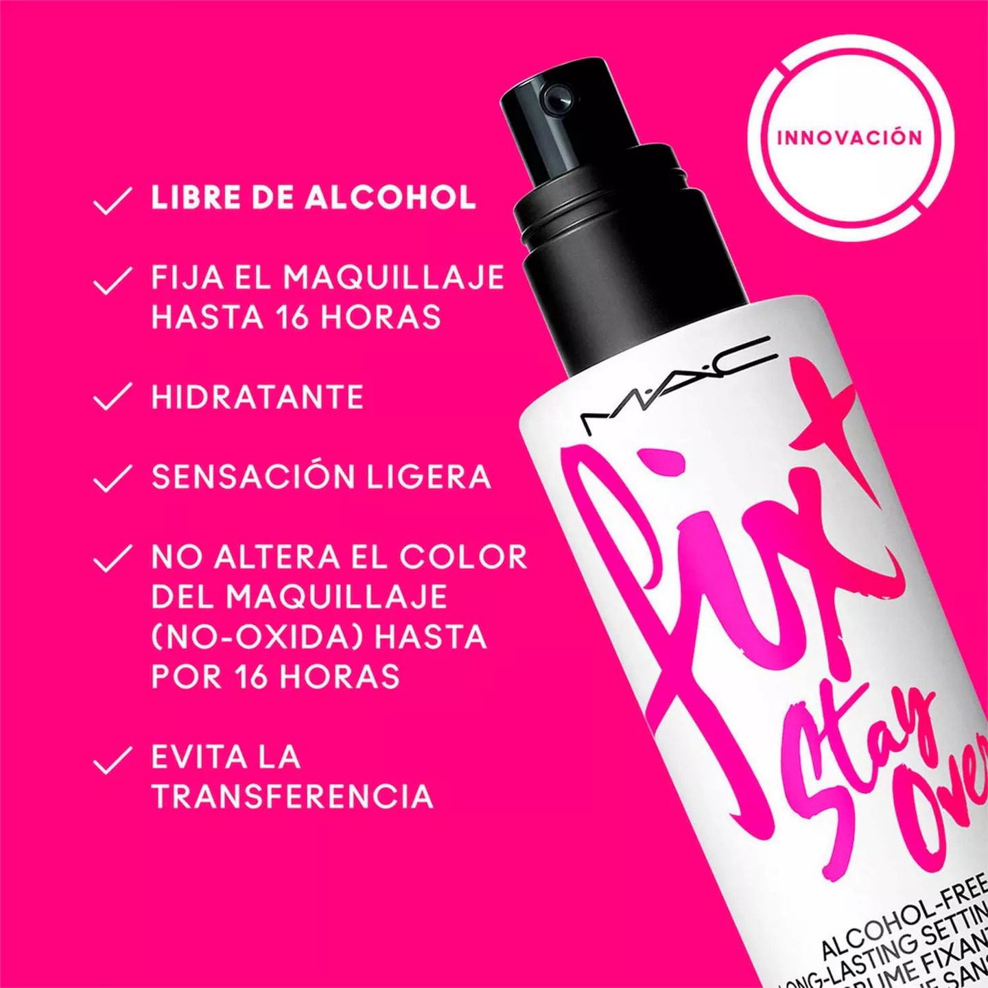 Es un spray fijador de maquillaje libre de alcohol, diseñado para “lockear” (fijar) el maquillaje durante muchas horas sin resecar la piel.