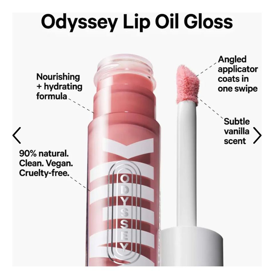– 0.2 oz/ 6.5 mL Odyssey Lip Oil Gloss en Werk Trip (rosa empolvado)