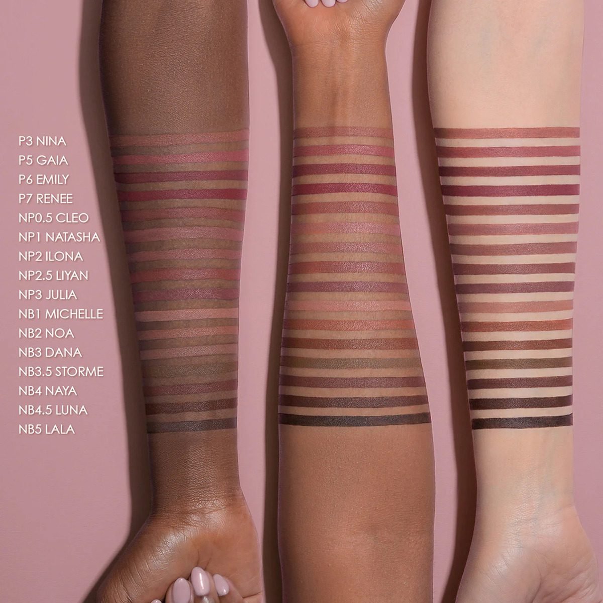 Un delineador de labios nude con una fórmula mate cremosa y lujosa en P3 Nina – Warm Dusty Rose.