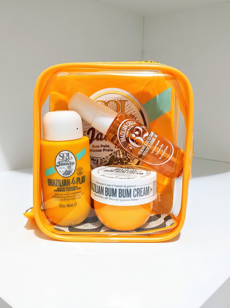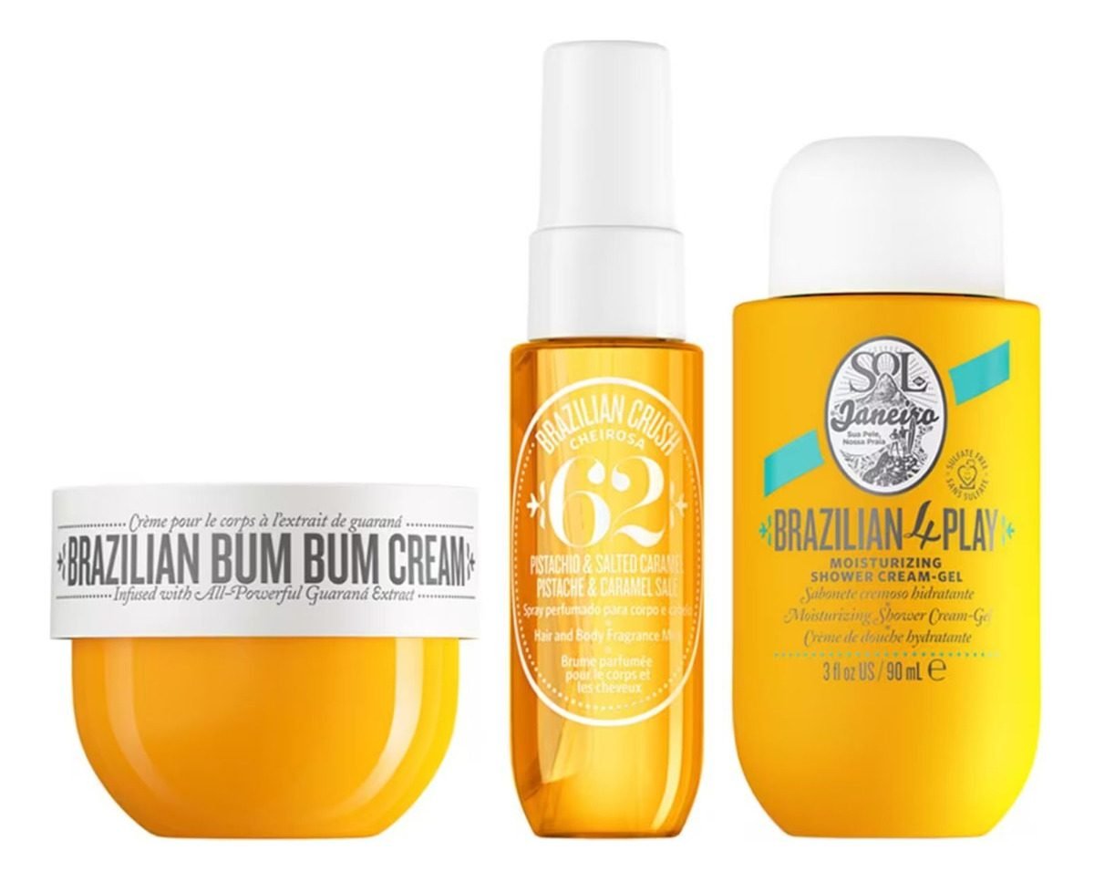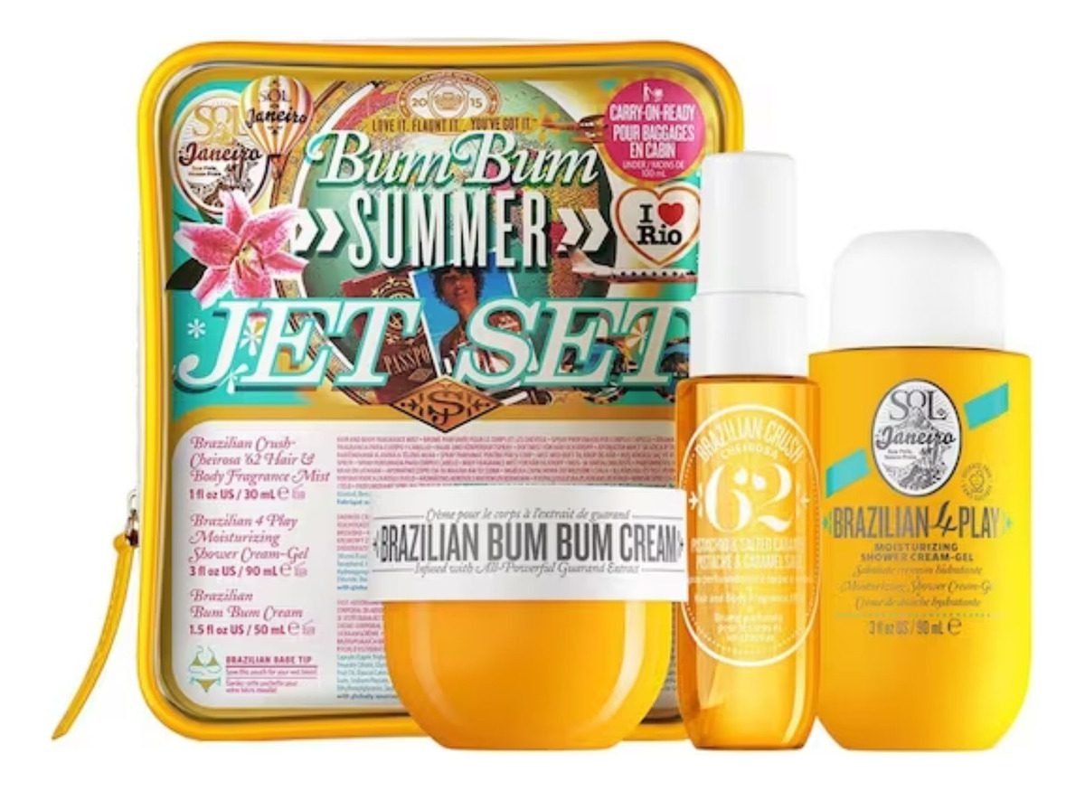 Este kit de viaje Brazilian Bum Bum Jet Set de Sol De Janeiro está compuesto por un trío de productos que aman el cuerpo, todos con la fragancia favorita de los brasileños, Bum Bum Cream Cheirosa 62.