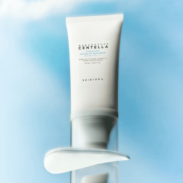 El Skin1004 Hyalu-Cica Water-Fit Sun Serum SPF50+ PA++++ es un protector solar tipo sérum con textura acuosa/líquida que combina protección solar de amplio espectro con propiedades hidratantes y calmantes. No deja rastro blanco (“white cast”) y está diseñado para absorberse rápido, quedando ligero sobre la piel.