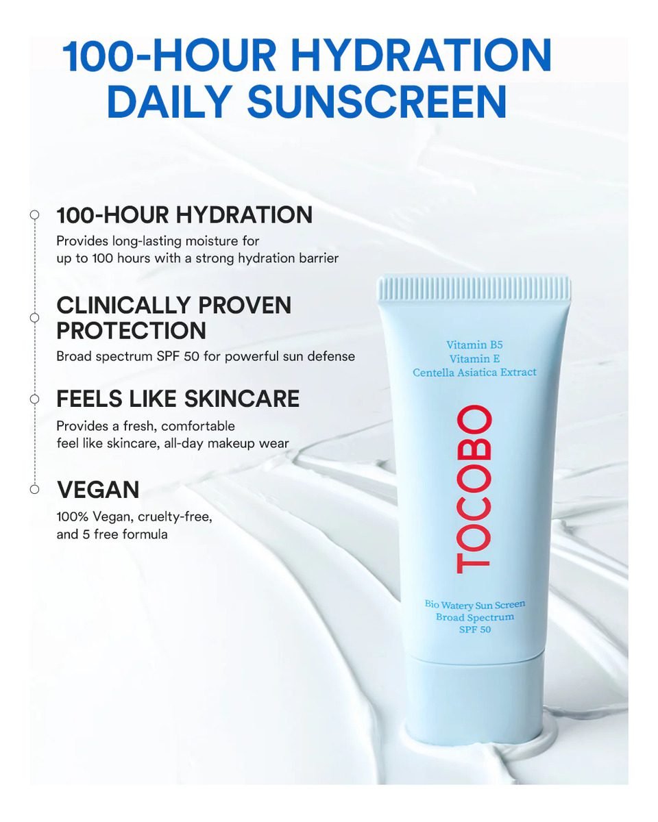 Este protector solar ligero, vegano y con SPF 50 proporciona 100 horas de hidratación (clínicamente comprobadas) mientras protege tu piel del daño solar. Enriquecido con Vitamina y Cica para calmar y fortalecer, deja la piel fresca, tersa y luminosa.